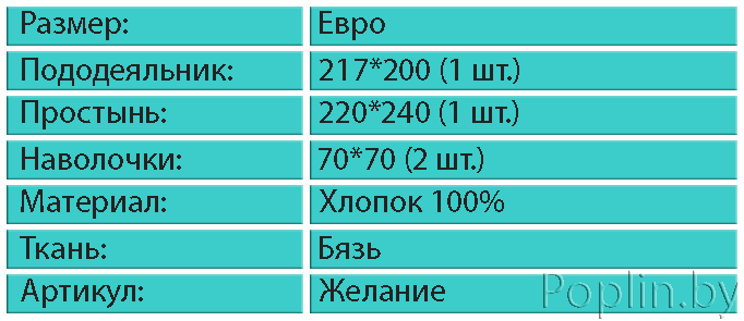 | Размер | Бязь, Евростандарт |