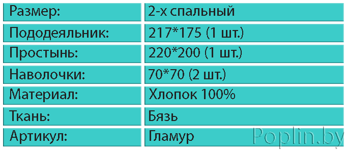 Купить 2 спальное постельное белье материал бязь артикул"Гламур" Вы можете в нашем интернет-магазине Poplin.by. Не дорого, но отличного качества купить постельное белье по всей Беларуси можно у нас. Комплект"Гламур" содействует глубокому и безупречному сну, при этом создаст в комнате комфорт и уют.