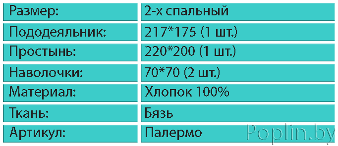 Купить 2 спальное постельное белье материал бязь артикул"Палермо" Вы можете в нашем интернет-магазине Poplin.by. Не дорого, но отличного качества купить постельное белье по всей Беларуси можно у нас. Комплект"Палермо" содействует глубокому и безупречному сну, при этом создаст в комнате комфорт и уют.