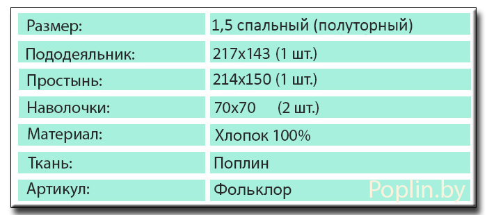 Купить полуторный комплект из поплина артикул "Фольклор" в Минске или в любом другом населенном пункте Беларуси Вы можете в нашем интернет-магазине Poplin.by. Купить поплиновое постельное белье 1,5 спального размера можно через корзину, или заказать по телефонам. Комплект пошит из ткани произведенной из 100% натурального хлопка, экологически чистой, не вызывающей ни каких аллергических реакций (ЭКО продукт), поэтому такое белье отлично подойдет и для взрослых, детей и подростков. Вы определились?! Купить комплект постельного белья, материал поплин, артикул "Фольклор" можно прямо сейчас, позвоните нам по телефону: А1 +375-29-688-94-58; МТС +375-33-672-83-69.