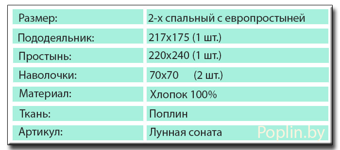 Купить поплиновое постельное белье размер двух спальный с большой простыней (евро простынь) артикул Лунная соната вы можете в нашем Интернет - магазине Poplin.by. Не дорогое, но качественное постельное белье Лунная соната 2 спального размера с простыней евро купить можно в любое время, заказав комплект через корзину.