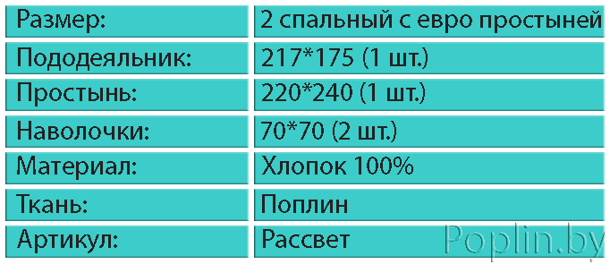 | Размер | Поплин, Двухспальное с евро простыней |