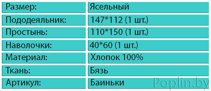 Бязь, ясельный комплект постельного белья, Артпостель