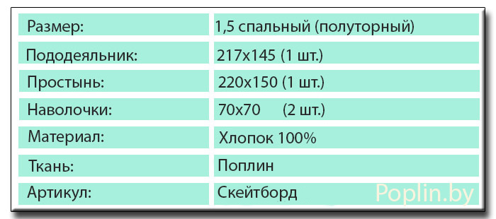 Вы хотите купить детское постельное белье из поплина хорошего качества? Это просто! Купить поплиновый комплект артикул "Скейтборд" полуторного размера в нашем интернет-магазине Poplin.by означает быть уверенным, что: