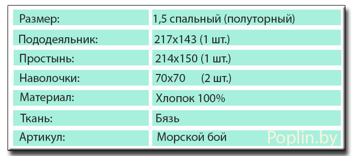 Постельное белье "Морской бой" хорошо подойдет для мальчика подростка. Эта расцветка белья будет сочетаться с цветами любой мебели, идеально подойдет и для небольших помещений, так как визуально будет увеличивать спальню. Белье Морской бой , имеющее охлаждающий и умиротворяющий цвет, будет успокаивать и активизировать мозговую динамичность ребенка. Постельное белье "Морской бой", со спокойным оттенком, будет оказывать на ребенка позитивное психологическое влияние, что необходимо для подросткового возраста, когда чувственное напряжение зачастую достигает вершины.