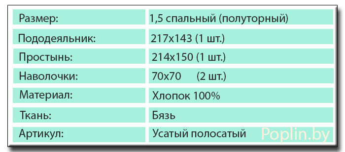 | Пододеяльник | 1 шт: длина 215 см, ширина 143 см |